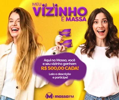 A nova promoção “Meu Vizinho é Massa FM 2024” chegou com uma proposta irresistível! Agora, você e seu vizinho podem ganhar um prêmio total de R$1000! Isso mesmo, são R$500 para você e R$500 para o seu vizinho. Se você está se perguntando como participar e quais são os detalhes dessa super promoção, continue lendo.